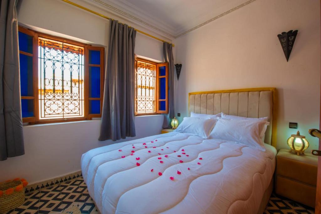 Les chambres comprennent une armoire et une télévision à écran plat. Le linge de lit et les serviettes sont fournis. Un petit-déjeuner buffet ou à la carte est servi sur place. Parlant français, anglais et arabe, le personnel de la réception pourra vous aider à planifier votre séjour. Vous séjournerez à proximité du musée orientaliste de Marrakech, du Jardin Secret et du musée Mouassine. L'aéroport le plus proche, celui de Marrakech-Ménara,